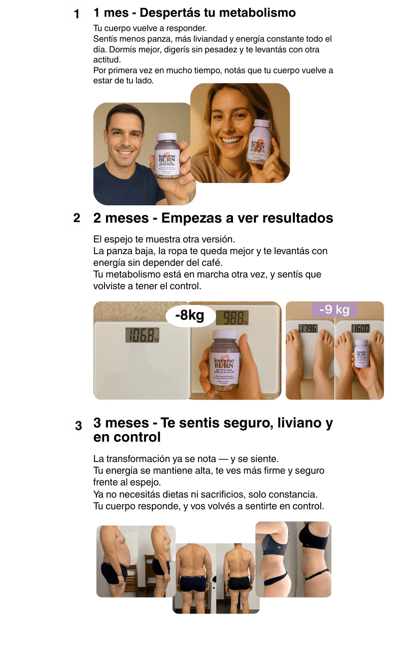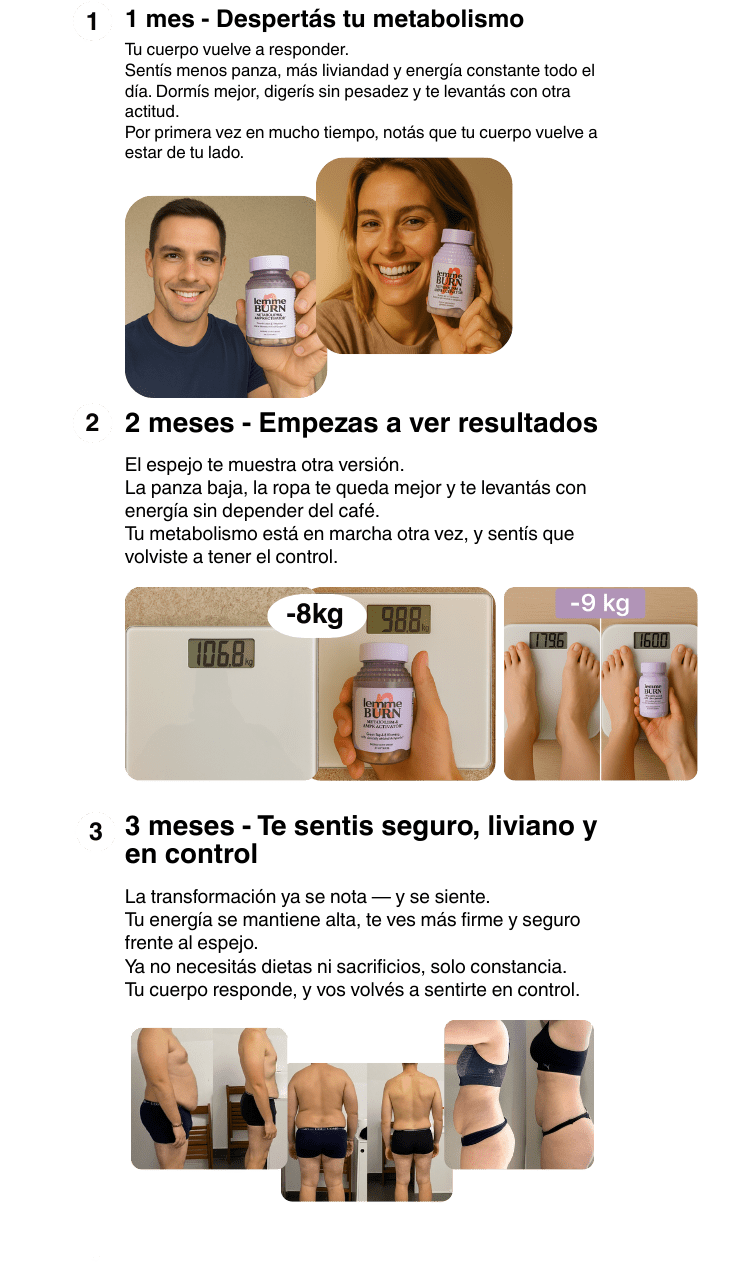 Lemme Burn es un activador metabólico natural diseñado para ayudar a tu cuerpo a volver a quemar grasa, eliminar hinchazón y recuperar energía sin depender de cafeína ni dietas extremas.